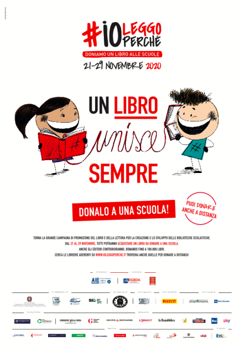 La nostra scuola ha aderito a IO LEGGO PERCHE´, l´iniziativa dell´AIE attraverso cui dal 21 al 29 novembre è possibile donare libri alla Scuola recandosi presso le librerie gemellate o andando sul sito www.ioleggoperchè.it e donando a distanza.