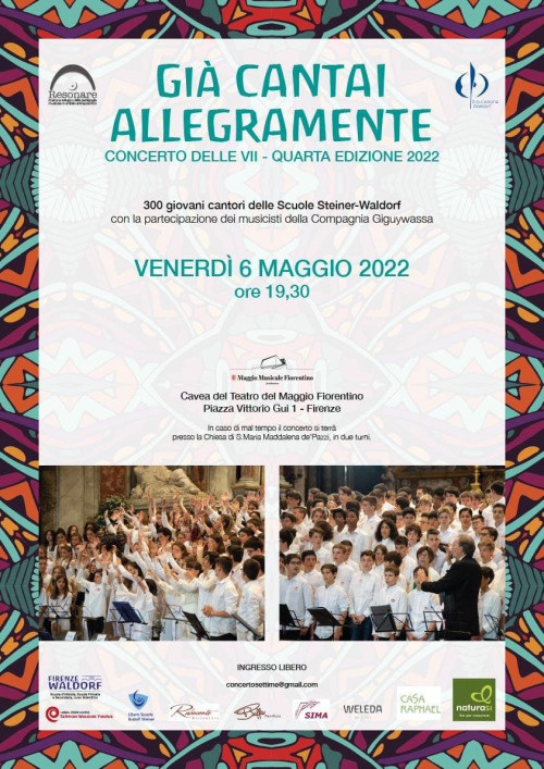 Trecento giovani cantori provenienti da venti Scuole Waldorf d´Italia si riuniranno a Firenze per dar vita alla IV edizione di Già cantai allegramente concerto delle VII classi.