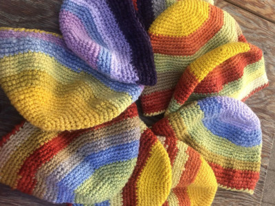 I bambini della IV classe durante il loro terzo anno di ciclo scolastico, hanno realizzato un cappellino ad uncinetto assieme alla maestra Carola, con l´utilizzo di lane tinte dalla maestra Claudia con pigmenti naturali