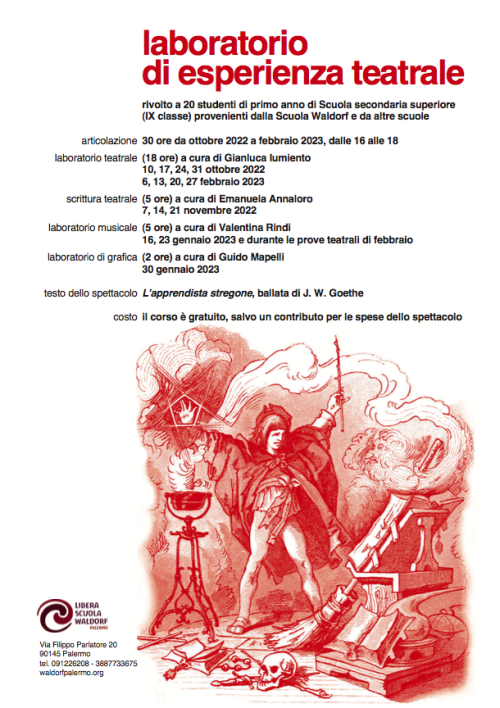 Il laboratorio di esperienza teatrale, tenuto da Gianluca Iumiento, inizierà il prossimo10 ottobre presso la Libera Scuola Waldorf di Palermo.