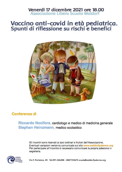 si terrà la conferenza del dott. Riccardo Nocifora e del dott. Stephan Heinzmann sul tema:  Vaccino anti-covid in età pediatrica. Spunti di riflessione su rischi e benefici