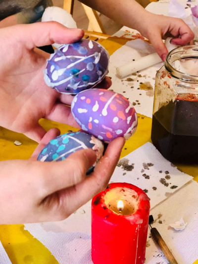 La VI classe dipinge le uova secondo la tecnica ucraina portata da Maestra Lidia e cioè utilizzando la cera a caldo.