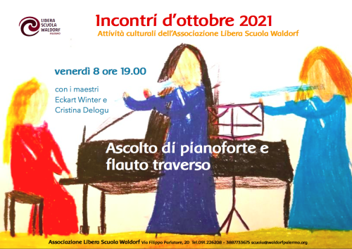 Nell´ambito degli ascolti musicali del calendario culturale d´ottobre, il maestro Winter e la maestra Delogu offriranno ai soci dei brani di pianoforte e flauto traverso. Il ricavato dell´incontro sarà devoluto al 50% per finanziare il progetto africano sostenuto dal maestro Winter e al 50% per sostenere il fondo musicale della Scuola.