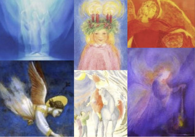 Avvento significa ‘arrivo’. Il nome proviene dalla parola latina advenire, cioè ‘arrivare’, ‘giungere’. Il termine greco è parusìa , ‘arrivo’, ‘presenza’, ‘essere qui’. Al di sopra del periodo dell’Avvento sta una parola, che vorrebbe risuonare in ogni animo umano: la parola divieni. A questa parola si aggiunge un’immagine: Maria che avanza verso il momento della nascita di Gesù. Maria non è solamente una figura storica, ma è l’archetipo dell’anima umana che è disposta a divenire, ad andare incontro a ciò che in noi vorrebbe nascere. Questo si esprime già nel colore delle sue vesti: il blu avvolgente ed il caldo rosso che risplende dall’interno.