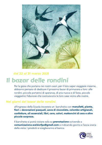 Il bazar delle rondini si potrà visitare solo su prenotazione scrivendo a comunicazione.waldorfpa@gmail.com. Nella mail occorrerà indicare: